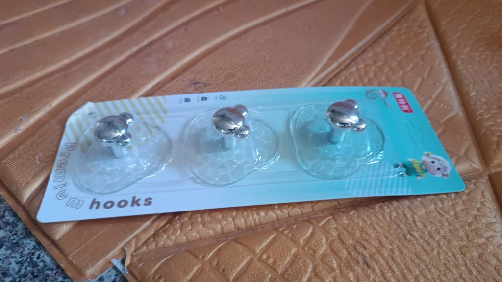 All-Plastic Adhesive Wall Hooks - Strong, No Damage, Easy to Install (3 Pc Set)