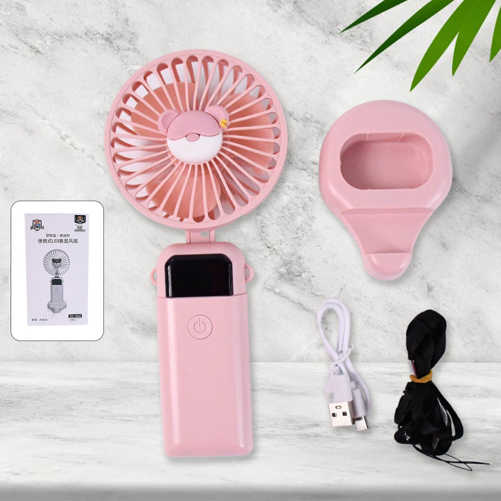 Mini USB Charging Fan with Percentage Display, 5 Speed Modes, and Mobile Stand